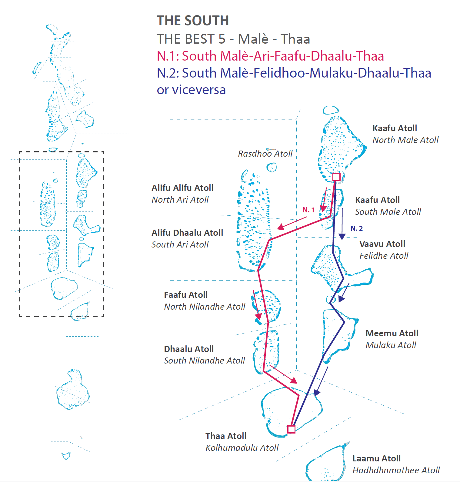 ITINERARY BLUE : Male north&south - Felidhoo - Mulaku – Thaa or vice versa.